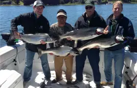 The big Chinook have arrived along the shoreline and fishing has been good for Coho and Halibut as well. Some halibut being caught are over the 102cm limit. There are still lots of lingcod around as well.