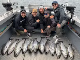 The most common salmon to catch from Ucluelet are Chinook(Kings) and Coho. On occasion you can also catch Pink salmon and rarely sockeye salmon. During August you may catch Sockeye salmon if using anchovies around SW corner. Sockeye are often restricted here for some odd reason as you rarely catch them.