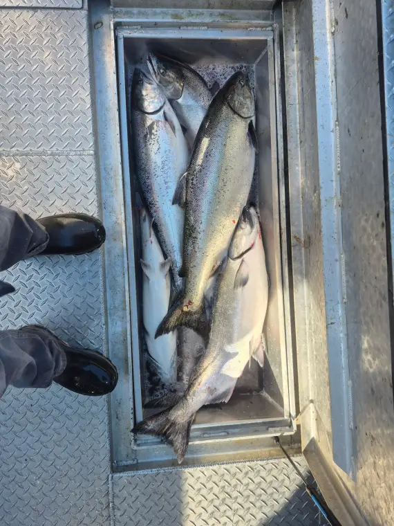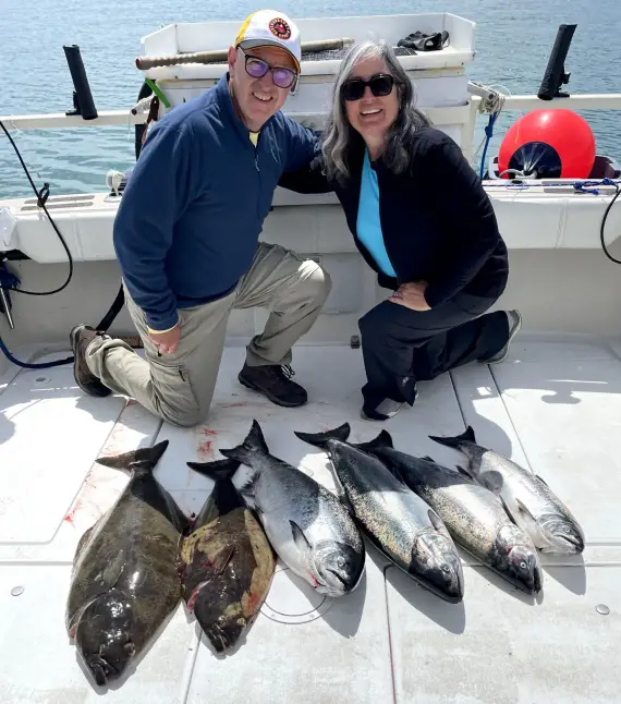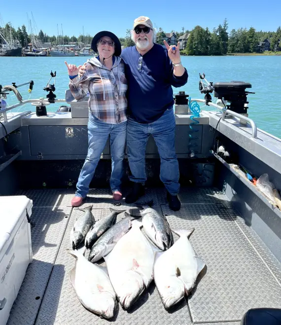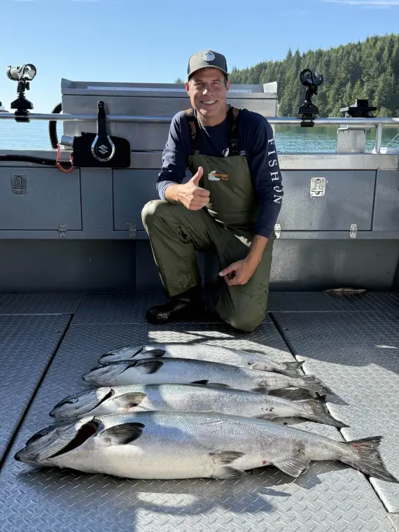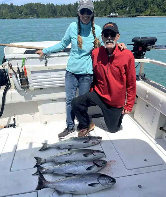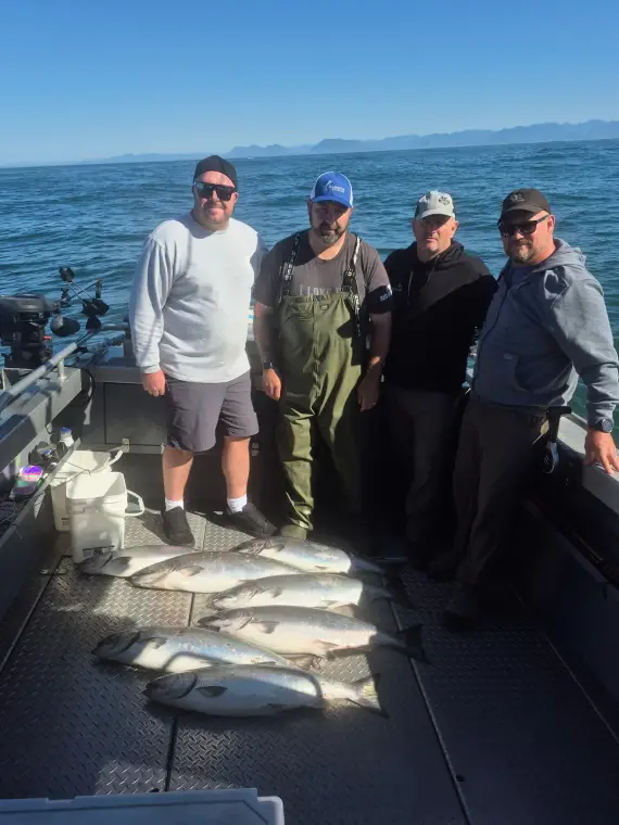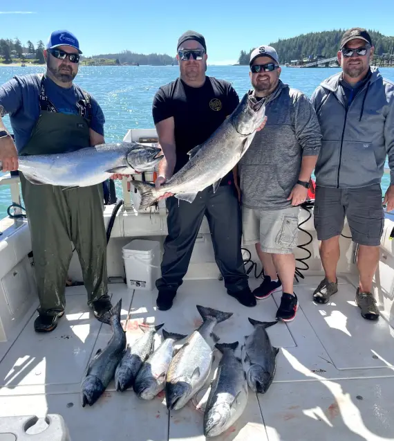 Chinook Fishingis is good right now for the larger Chinook in a few different spots. Some spots are more technical but when the bite is on its amazing expecially if you like catching salmon on live squid. The normal spots are catching for this time of year which are Long Beach, Outside Lighthouse Bank, Inside South, Florencia, Little Beach, and the Red Can. B arkly sound was good early July and now has fish again. Big Bank also has Chinook and can be a place to get your Chinook and Halibut together.
